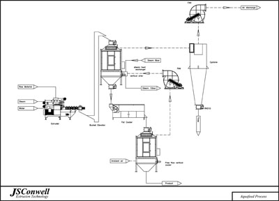 We are able to supply a complete aquaculture production system from extrusion, drying, oil coating (if required) and final pellet cooling along with air handling and conveying systems.